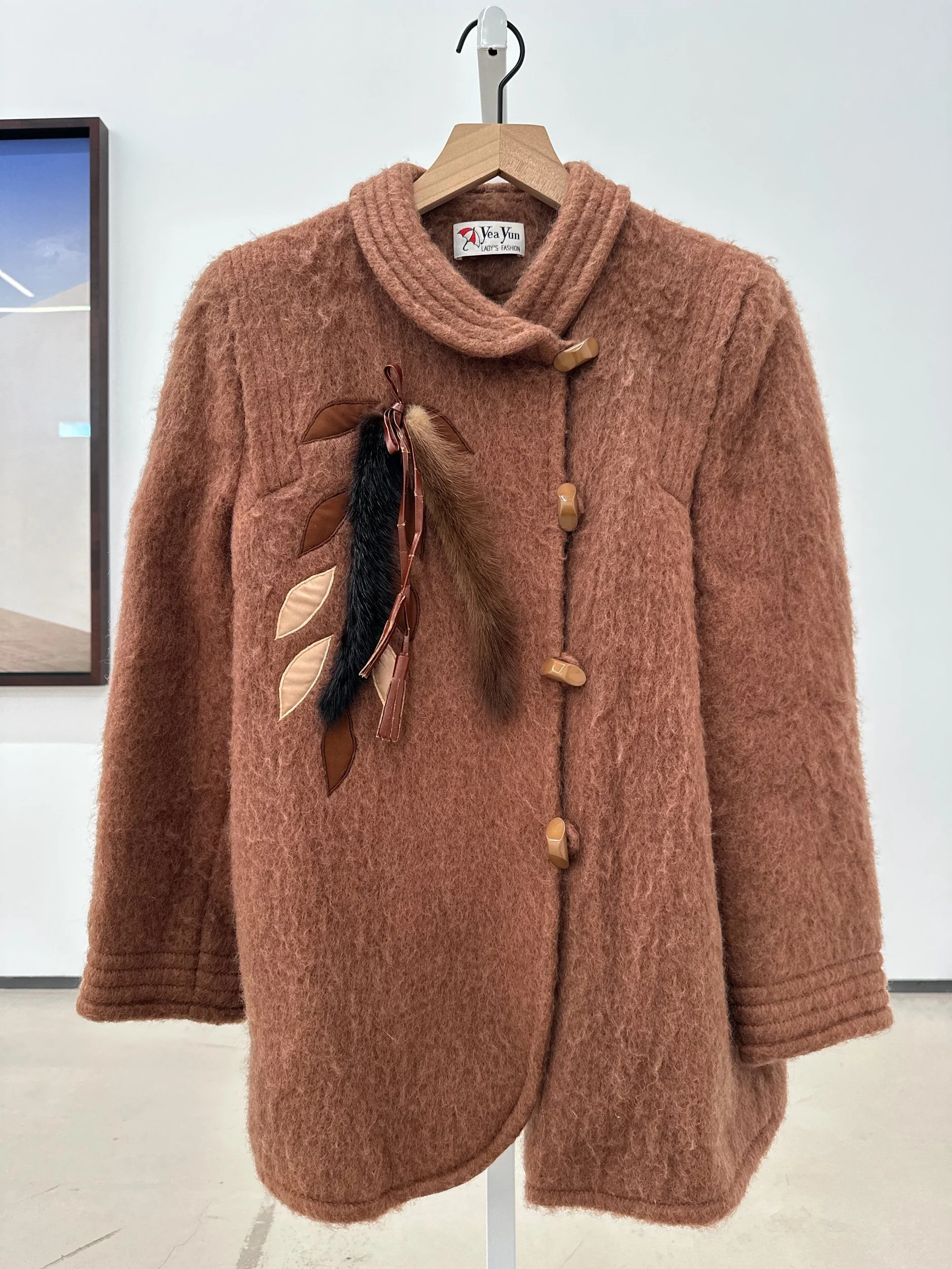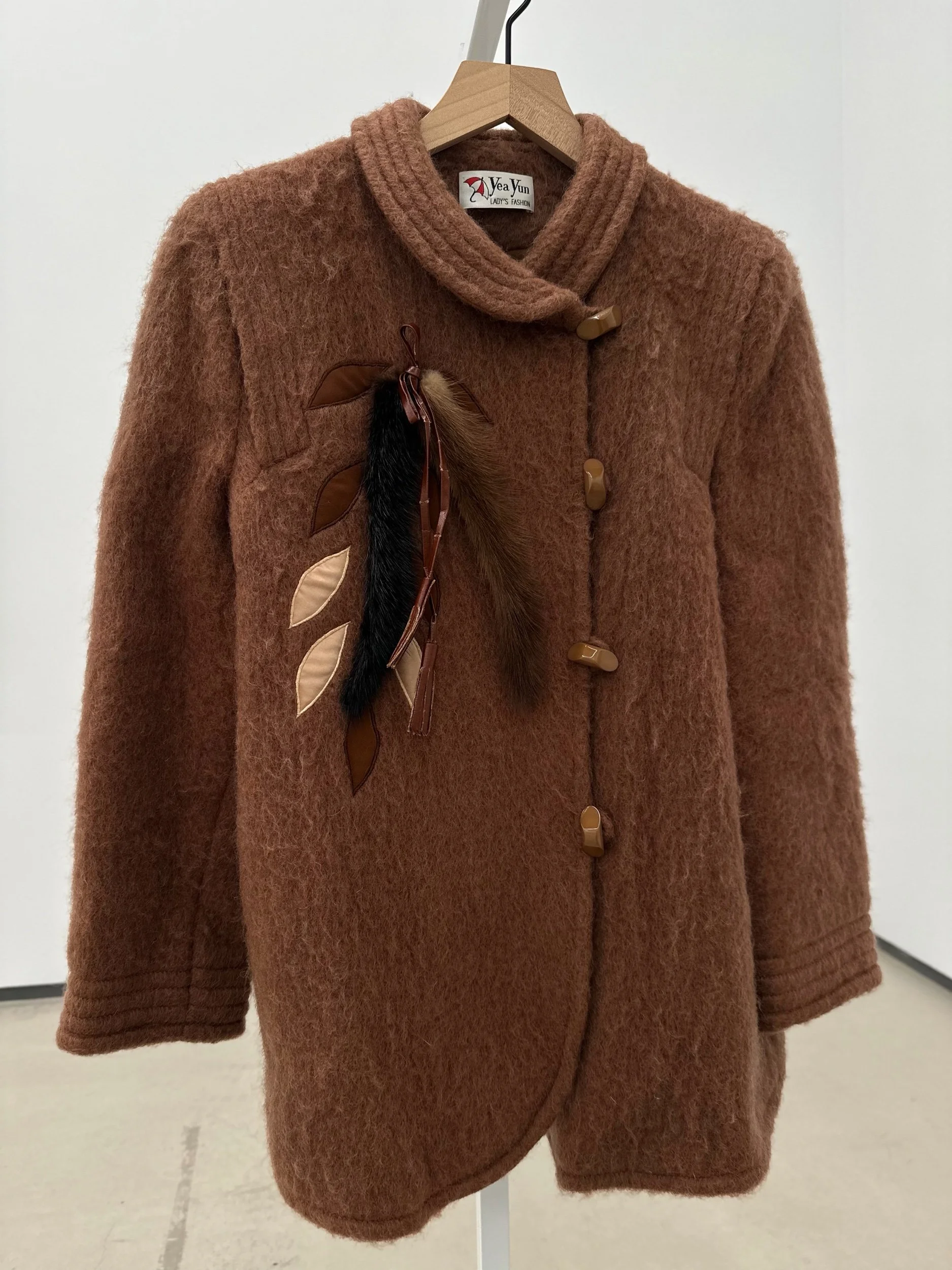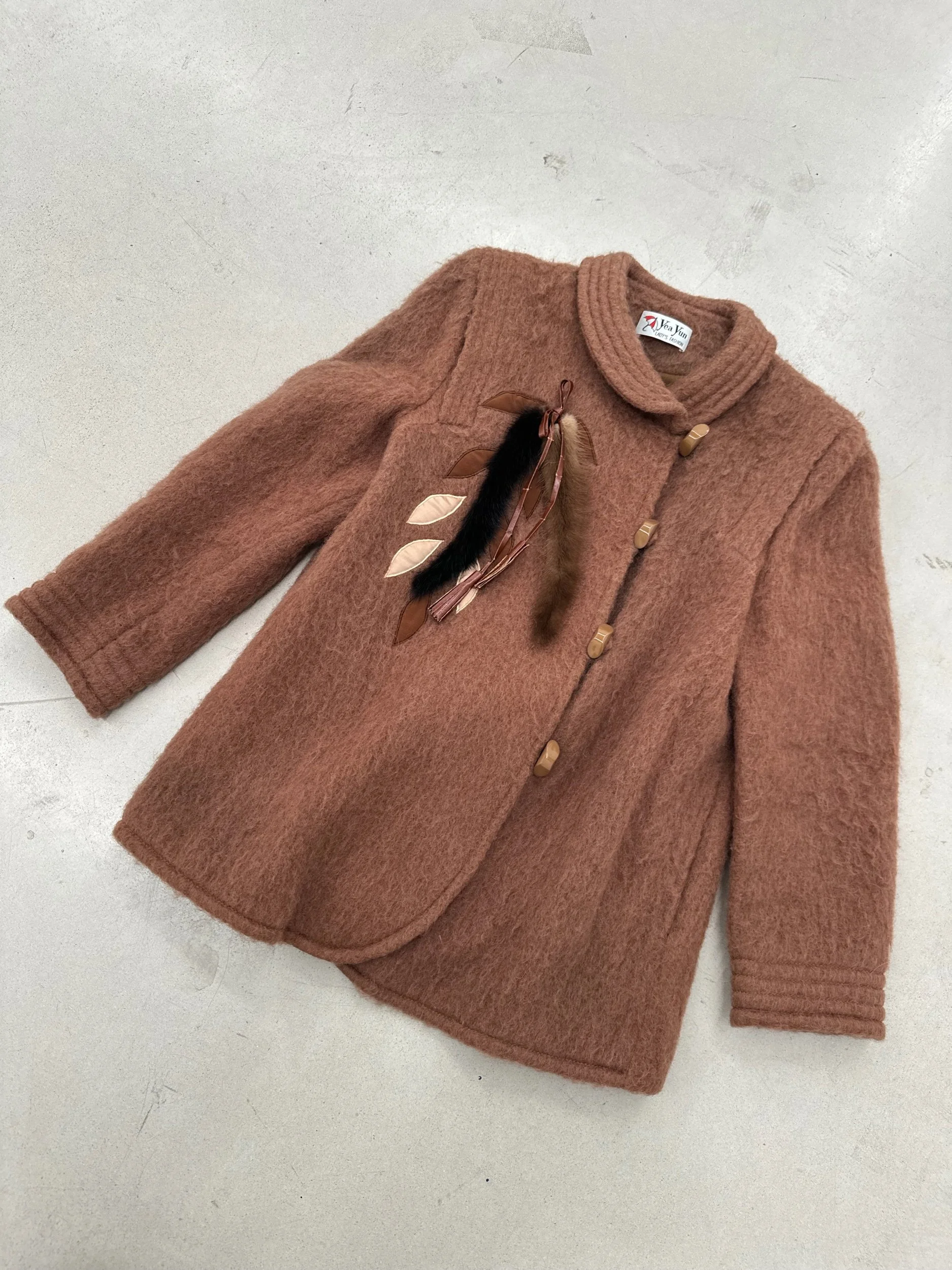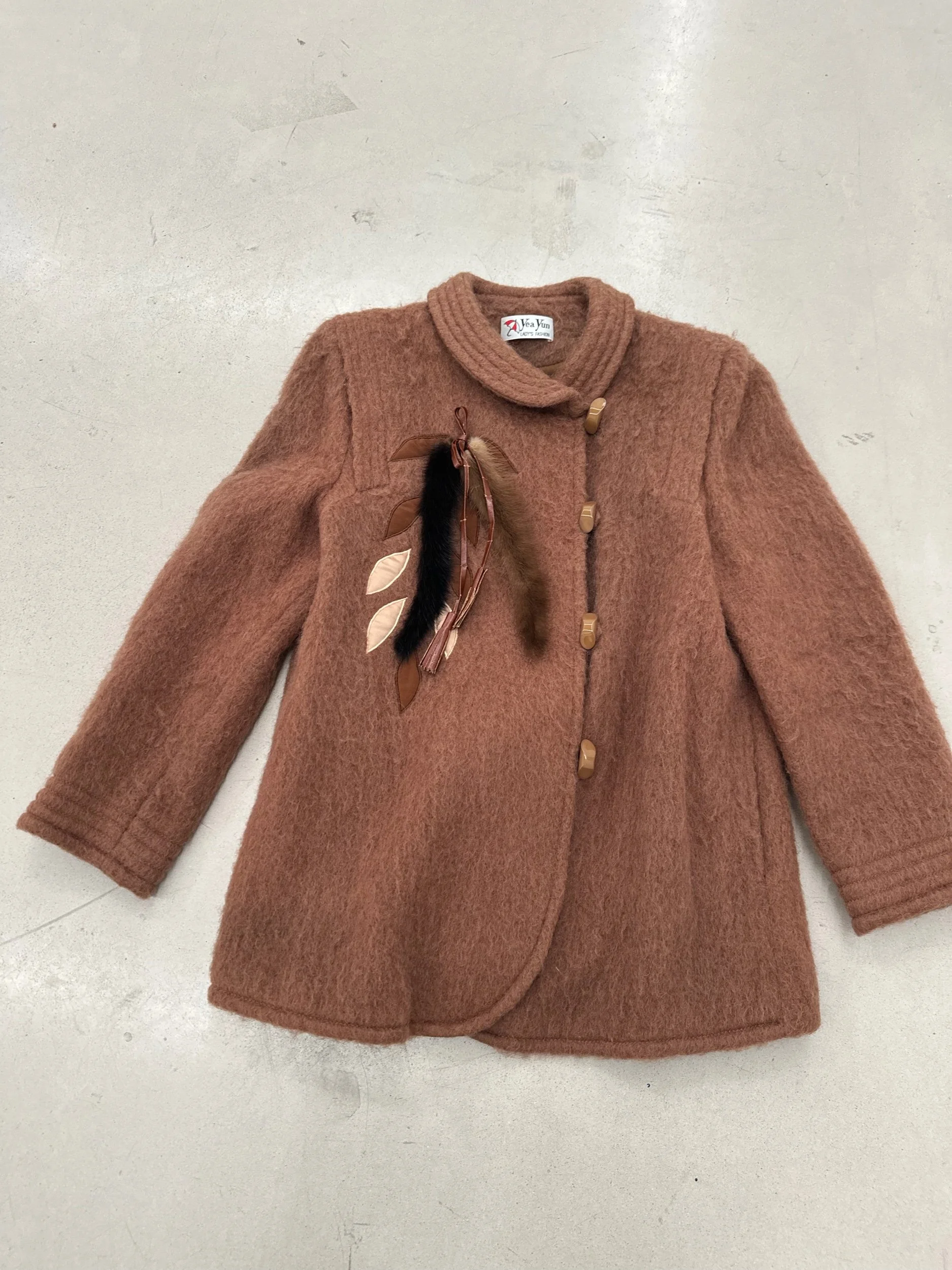 Shop the Closet › Peter Pan Wool Blend Jacket Image 1 of 4 Image 2 of 4 Image 3 of 4 Image 4 of 4 Peter Pan Wool Blend Jacket $60.00 Fits SmallWool- Mohair Blend toggle like button closures Fox tail details Add To Cart Added! Fits SmallWool- Mohair Blend toggle like button closures Fox tail details